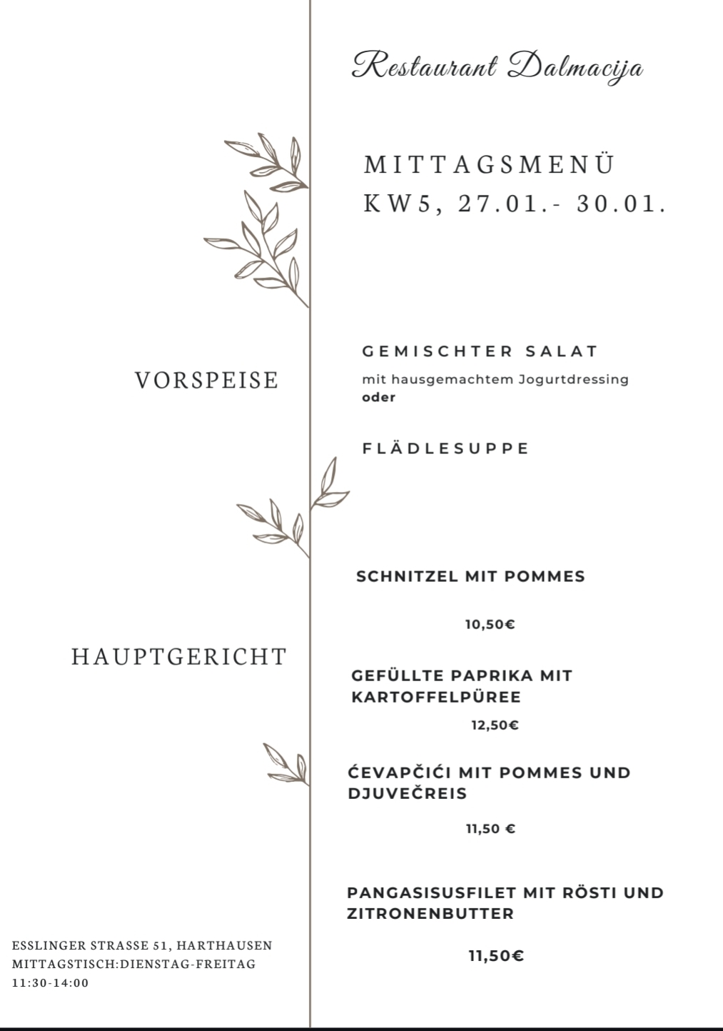 Gerne möchte ich Sie herzlich willkommen heißen im Restaurant DALMACIJA .